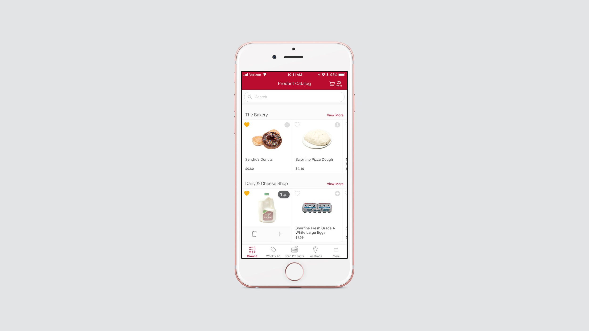 The grocery app strategy was to provide a fluent user experience from their current online store through the app. By extending the grocer’s brand presence via the white-labeled app, shoppers can effortlessly access their user accounts, manage and add items to their lists, and checkout with ease.